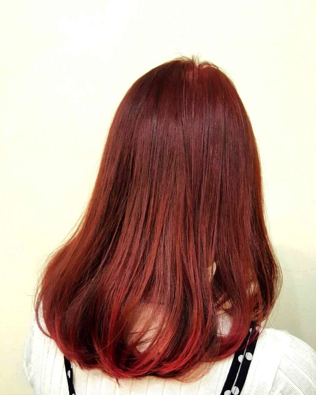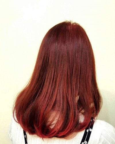 As she had bleached her hair before, a bright colour got easily be achieved. Therefore, even with just one colour, a pretty gradiation colour could be achieved under a short time. As time was precious to the customer, it was great that it was done quickly. If you originally have bright hair, it is a hair colour that I will recommend. |